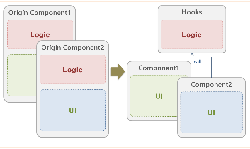 - Hooks에서 로직을 가져오므로