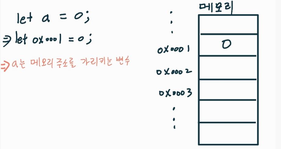 - a라는 변수는 0이라는 데이터가 저장된 메모리 주소를 가리키고 있는 것이다.