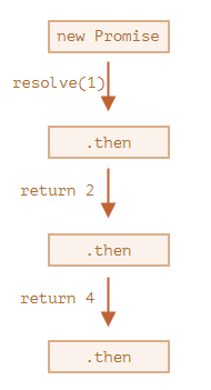result가 핸들러 체인을 따라 전달되므로, alert 창엔 1, 2, 4가 순서대로 출력됩니다.